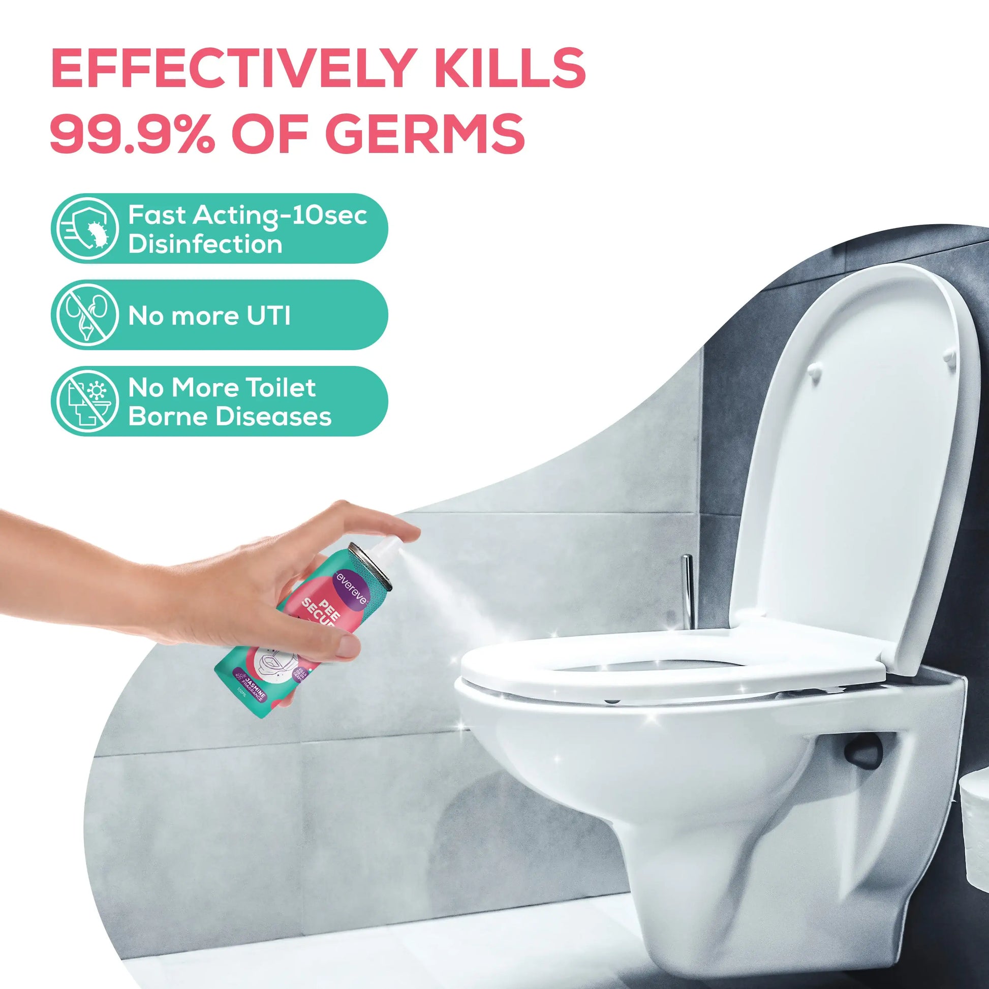 Evereve Pee Secure Toilet Seat Sanitizer Spray Combo, 100ml, 2's Pack