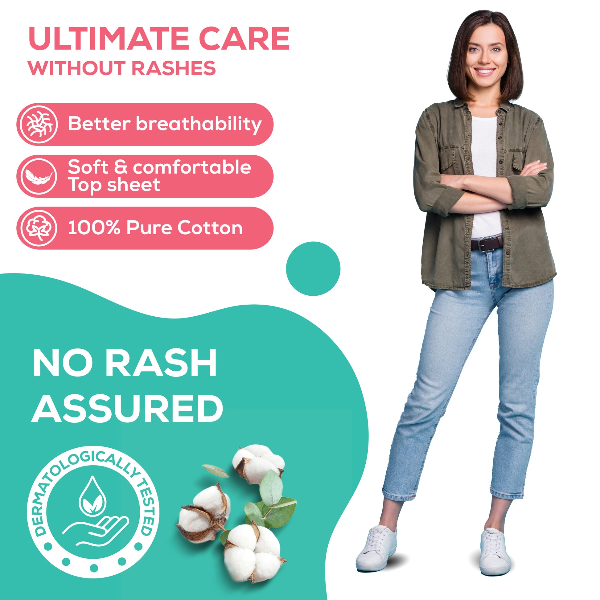 Cares for your skin- Dermatologically certified to be skin-friendly. Our pads are chlorine-free & fragrance free