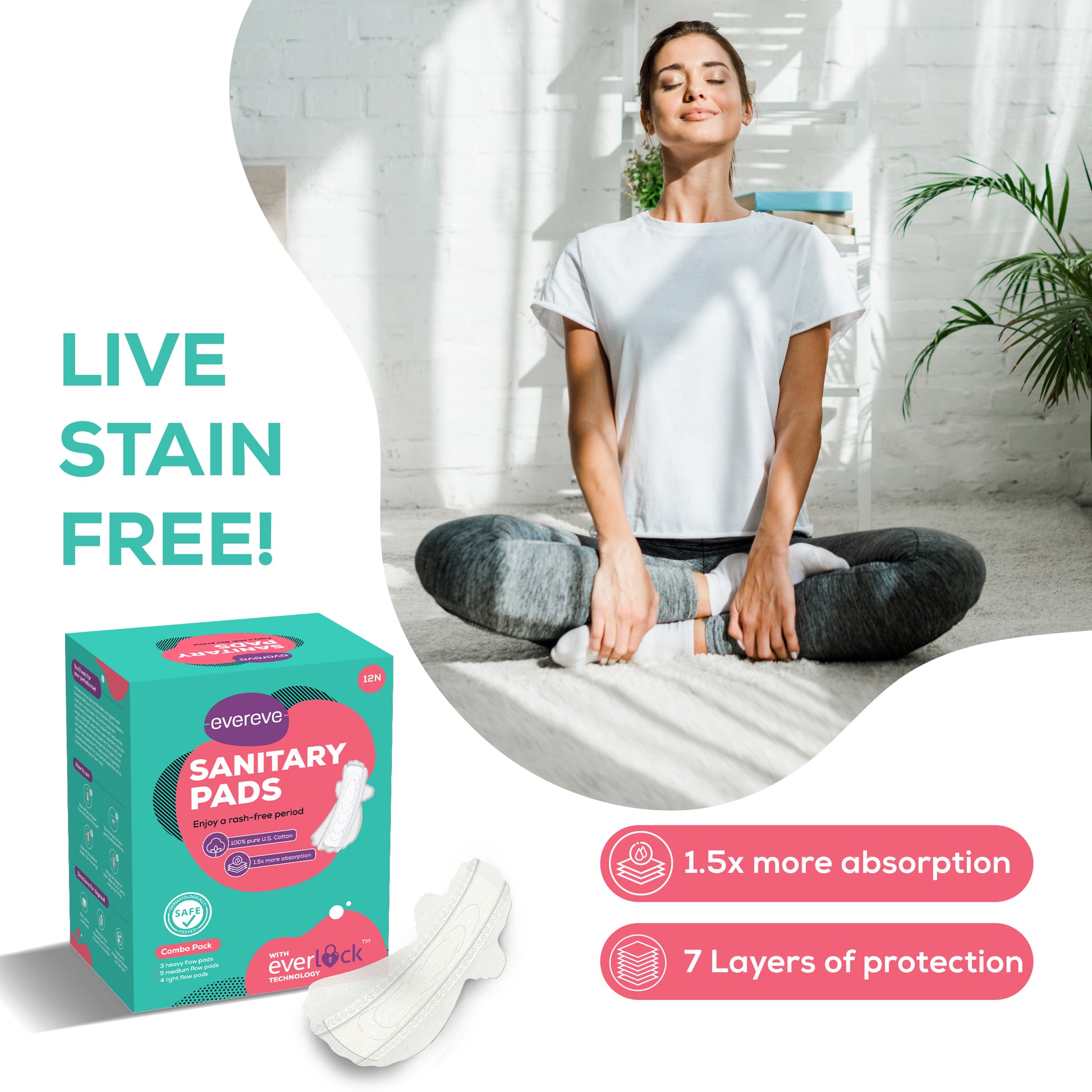 Evereve Ultra Thin Rash Free Cotton Sanitary Pads combo, , 12's Pack