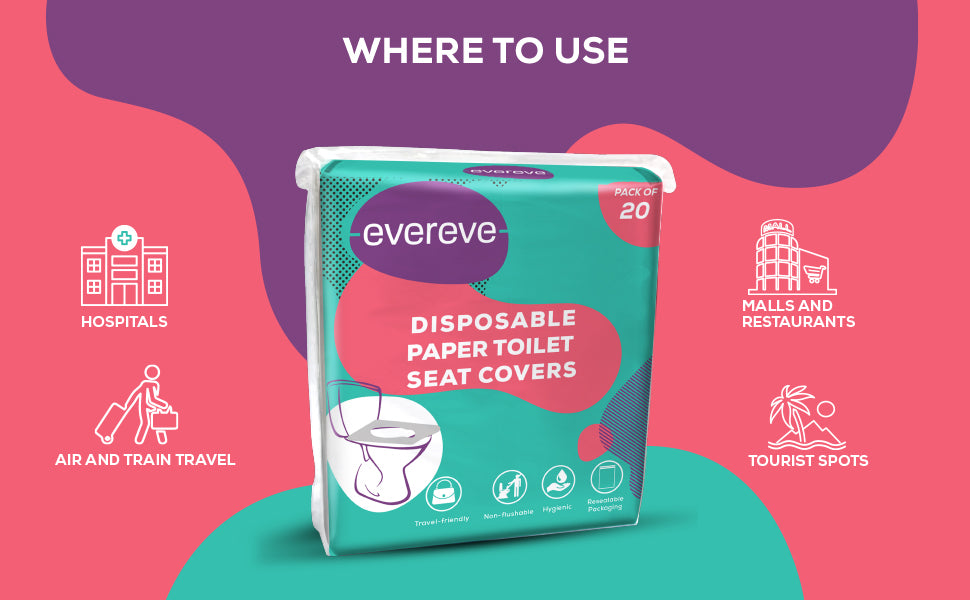 - Evereve Disposable Paper Toilet Seat Covers are a simple and effective way of ensuring there is no direct contact with toilet seat, thus preventing toilet borne diseases and Urinary Tract Infection (UTI).
