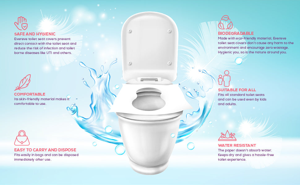 - Evereve Disposable Paper Toilet Seat Covers are a simple and effective way of ensuring there is no direct contact with toilet seat, thus preventing toilet borne diseases and Urinary Tract Infection (UTI).
