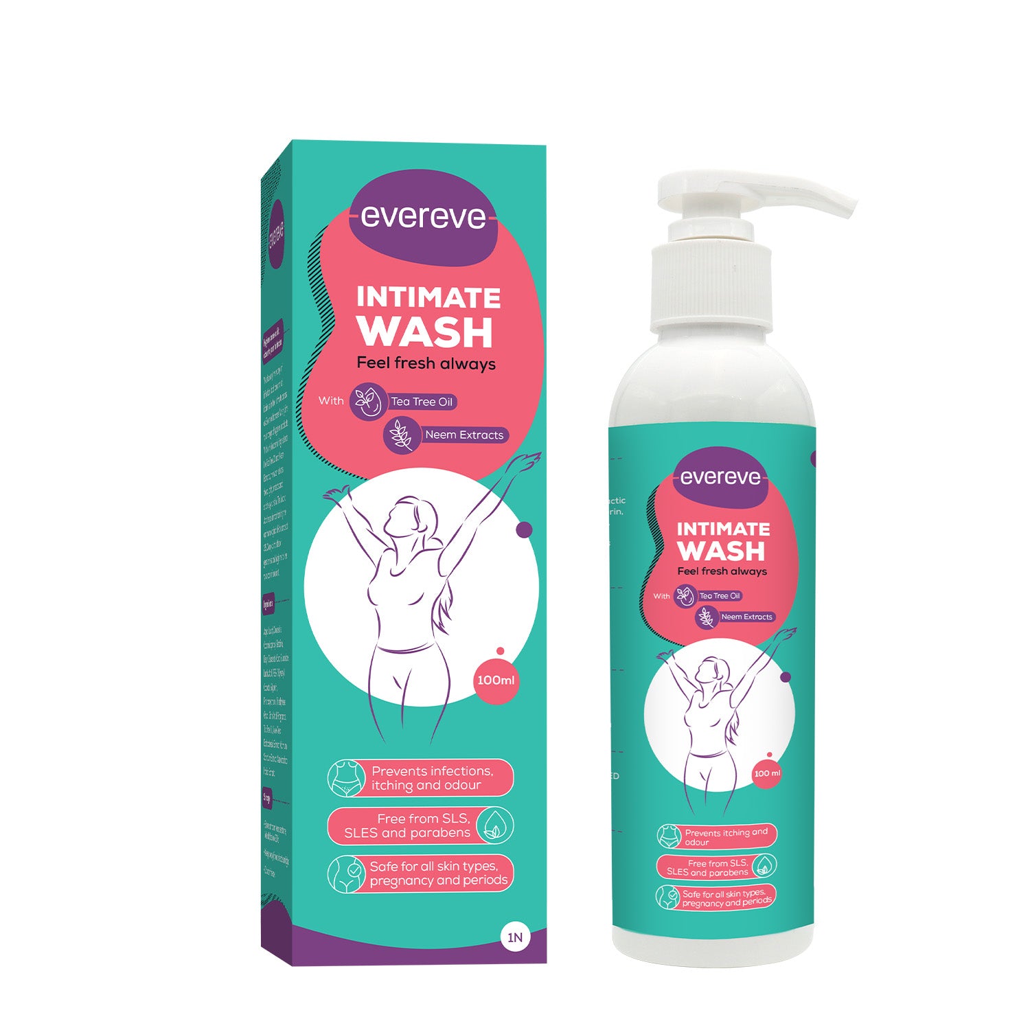 - Evereve Intimate Wash is created with natural anti-bacterial ingredients like Tea Tree Oil and Neem extract that gently clean, protect and soothe your intimate area, making you itch-free and odour-free.