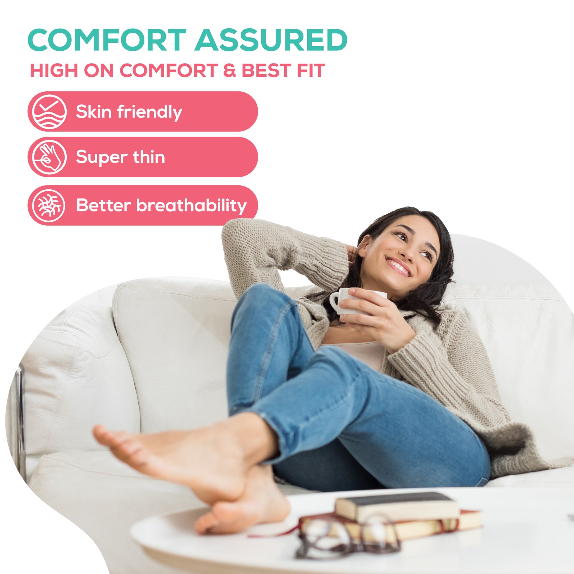 - Super absorbent core that absorbs liquid in seconds and keeps it away from the skin