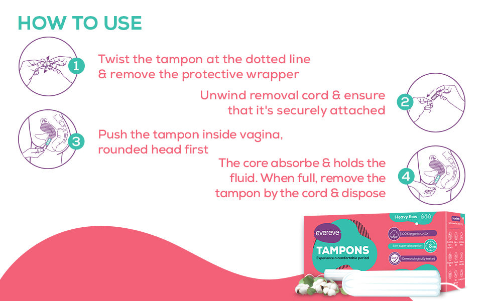 Evereve Tampons, 100% Organic Cotton, For Heavy Menstrual flow, 16 pcsCouldn't load pickup availability